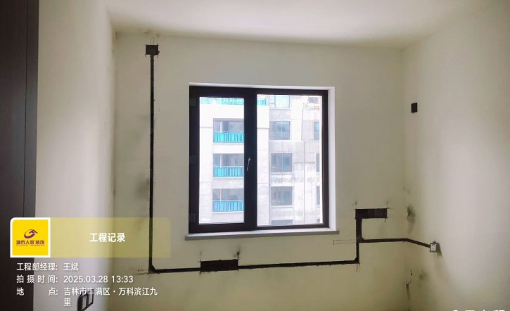 油工驗(yàn)收:墻面打磨處理、頂面順平處理、地面上返300mm找平、乳膠漆滾涂?jī)杀槭┕?、乳膠漆滾刷均勻、線槽石膏填平、粘繃帶處理